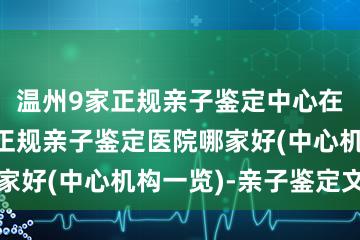 随着知识的积累和社会观念的转变,越来越多的人开始寻求亲子鉴定服务。在我们的网络答疑过程中,常有人询问“何处可找到亲子鉴定中心”等相关问题。为此,我们已整理了一份详尽的亲子鉴定机构名单及其收费标准,以下将为您逐一介绍。